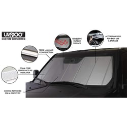 The UVS100 Heat Shield installs in seconds by unrolling and positioning against the inside of your windshield. The custom fit stays in place using the sun visors or tucking into the dash area. When you're ready to drive, simply roll it up and store it in the included storage bag or your vehicle.