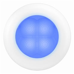 The Hella 980502241 is a compact 3-inch round LED courtesy lamp designed specifically for marine applications. This slim-profile lamp features advanced lens technology that delivers a cool, even spread of soft blue ambient lighting while consuming less than 0.5 watts of power—a fraction of the energy used by traditional incandescent bulbs.