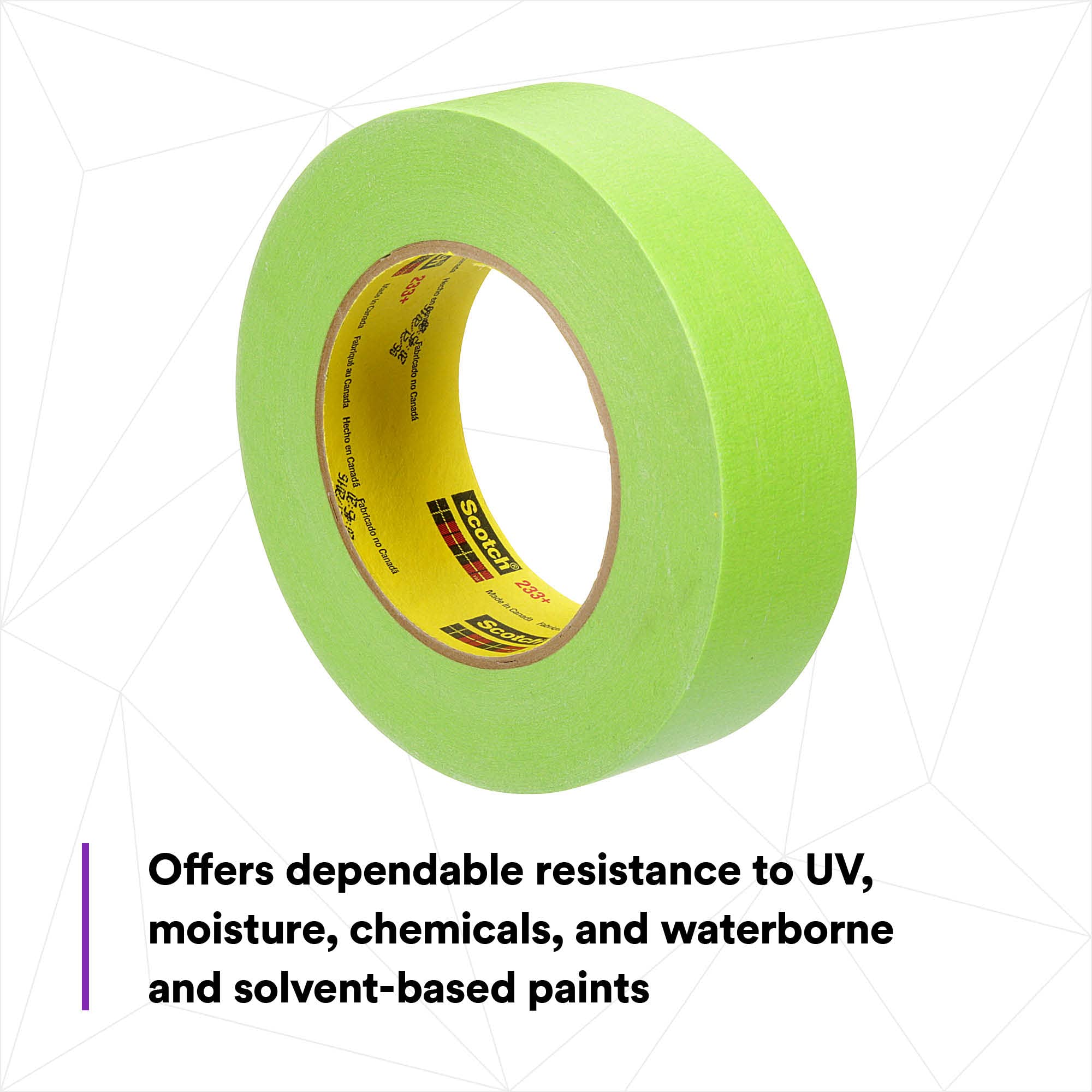 Ideal for automotive paint masking, bodywork, and refinishing operations where clean lines and reliable adhesion are critical. The 233+ tape removes cleanly without leaving adhesive residue, even after exposure to paint booth conditions.