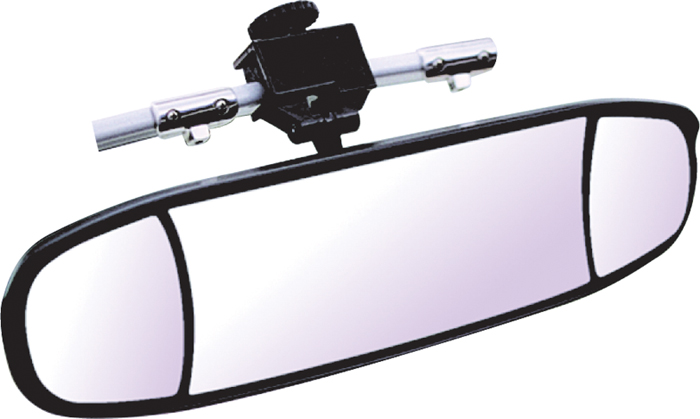 The CIPA Extreme Marine Mirror is designed exclusively for ski boats, providing exceptional rear visibility with almost 120 square inches of clear rear vision. This mirror features a 12 x 6 inch shatterproof convex center lens, and two adjustable 4 x 6 inch shatterproof flat lenses on each end, with an overall size of 7 x 20 inches for excellent wide-angle viewing.