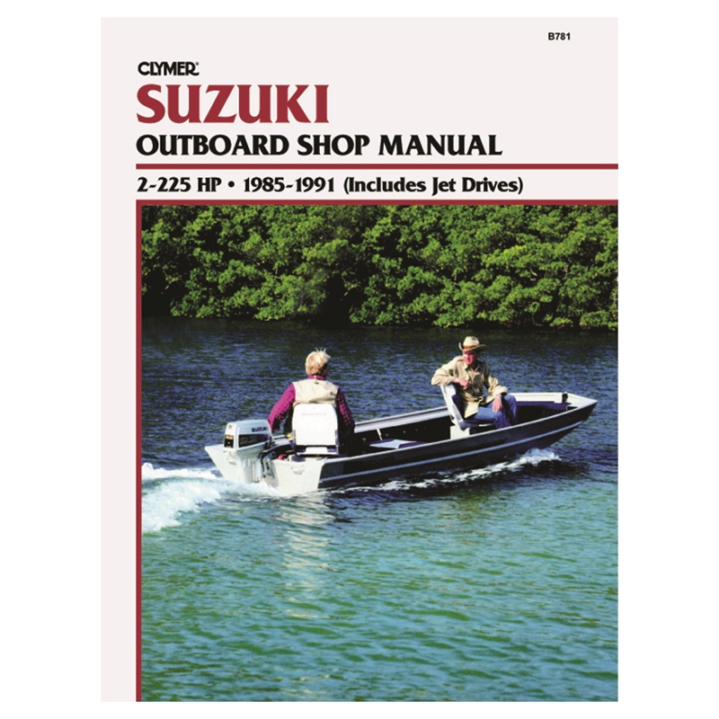 The Clymer B781 service and repair manual provides comprehensive maintenance and repair information for Suzuki outboard motors and jet drives from 2 to 225 horsepower, covering model years 1985-1991. This professional-grade manual is an essential resource for mechanics and do-it-yourself boat owners who need detailed technical guidance for their Suzuki marine engines.