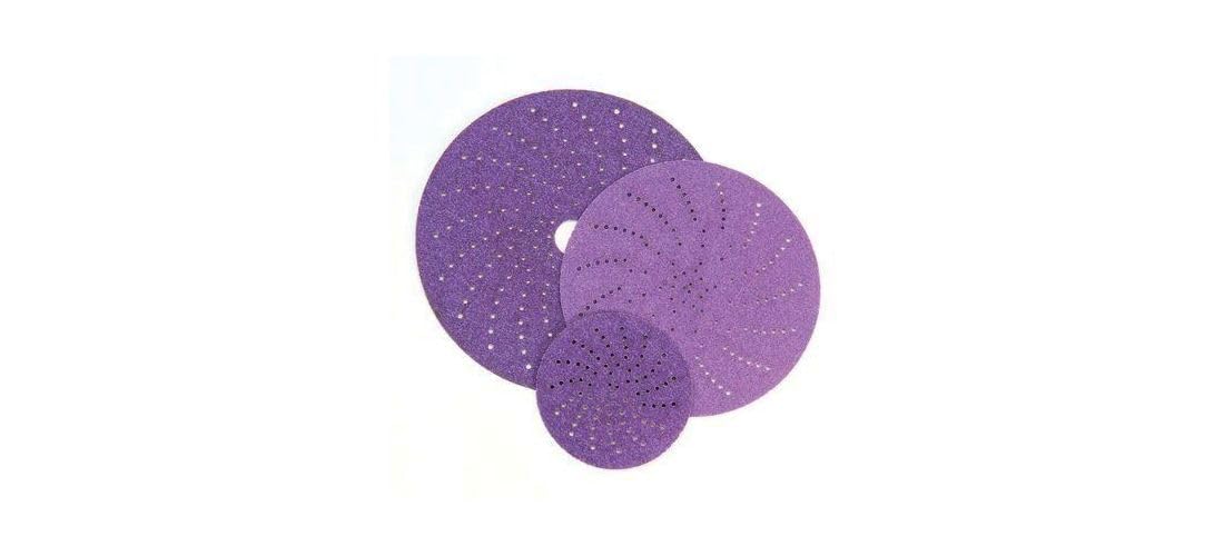 The self-sharpening triangular ceramic mineral continually fractures during use to expose fresh, sharp cutting edges, ensuring consistent cutting performance and extended disc life. The engineered hole pattern works with dust extraction systems to keep the work surface clean and maintain optimal cutting efficiency throughout the sanding process.