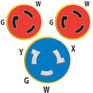 • Marinco 50A 125/250V male locking plug to dual 30A 125V female locking receptacles