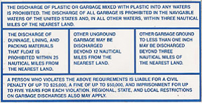 • Meets federal standards for marine pollution prevention signage