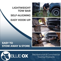 The Blue Ox BX7420 Avail tow bar delivers superior performance for RV owners towing vehicles up to 10,000 lbs. This premium tow bar features an improved turning radius for better cornering and smoother towing over rough roads, while keeping your towed vehicle safely away from the motorhome during tight maneuvers.