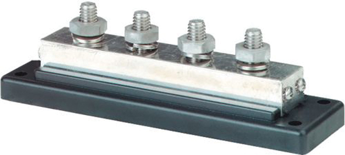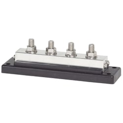The Blue Sea Systems 2104 PowerBar is a heavy-duty high amperage bus bar designed for DC mains on larger boats and other high-current circuits. This robust four-stud bus can handle up to 600 amps, making it ideal for main DC positive or negative distribution on larger vessels, as well as demanding applications like generators, inverters, windlass motors, large davits, and other high-current circuits.