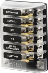 Blue Sea Systems 5015 AGC Glass Fuse Block 6 Circuit with Ground Bus