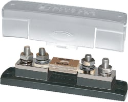 The Blue Sea Systems 5503 ANL Fuse Block provides heavy-duty circuit protection for DC main and other high-amperage circuits in marine electrical systems. Engineered to withstand harsh marine environments, this fuse block accommodates ANL fuses from 35 to 750 amperes, making it ideal for protecting battery banks, inverters, and high-draw equipment.