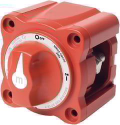 The Blue Sea Systems 6006 m-Series is a compact, waterproof battery switch designed for marine applications where space is limited. This mini battery switch controls a single battery to a single load group, offering ON/OFF operation with a removable red knob for added security during maintenance and service.
