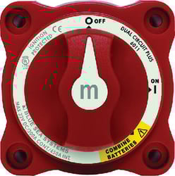 The Blue Sea Systems 6011 M-Series Dual Circuit Plus Battery Switch is a compact, waterproof solution designed to simplify battery management on boats and marine vessels. This innovative switch simultaneously controls two isolated battery banks while maintaining their separation, preventing accidental discharge of your starting battery and protecting sensitive electronics from voltage fluctuations during engine starting.