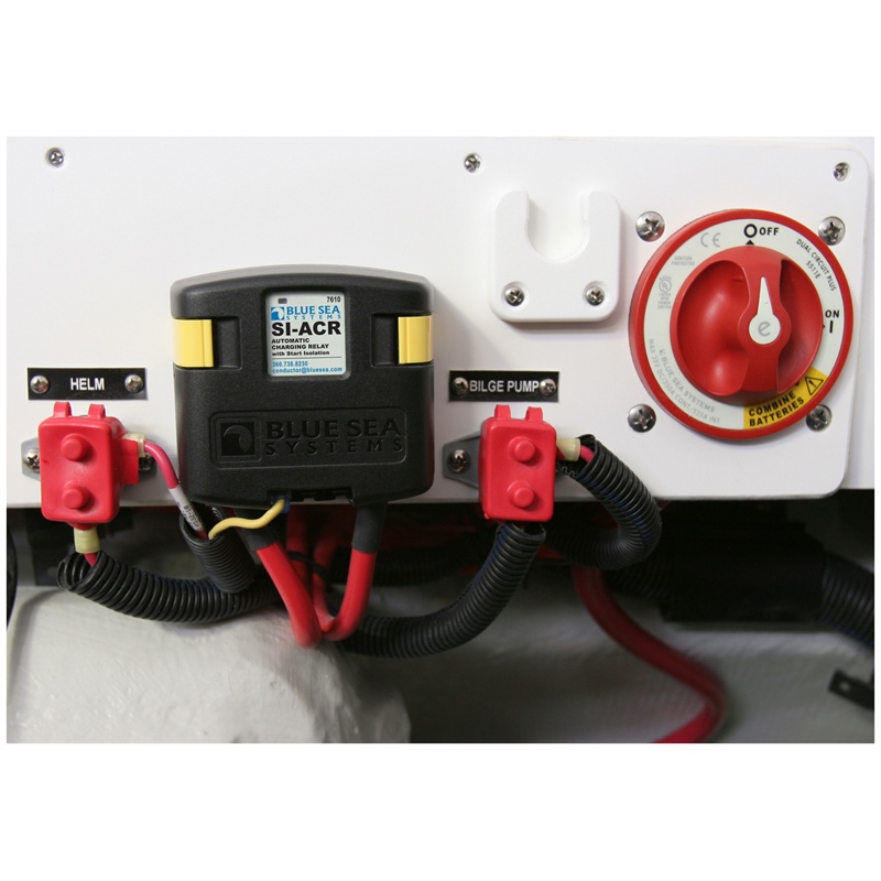 The included 7610 Automatic Charging Relay allows both batteries to charge simultaneously from a single charging source without the voltage drop associated with traditional battery isolators. The ACR automatically isolates the house battery during engine starts to protect sensitive electronics, then reconnects both batteries once charging voltage is detected. This intelligent system requires no external regulators or manual intervention.