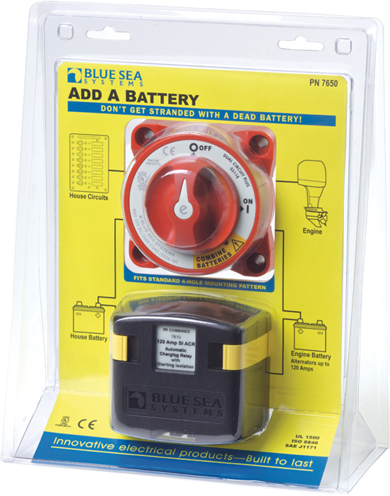 The Blue Sea Systems Add-A-Battery kit is designed for boaters adding a second battery to support additional electronics, trolling motors, or upgraded audio systems. This complete dual battery management system combines an automatic charging relay (ACR) and a dual circuit battery switch to ensure reliable power distribution and emergency backup capability.