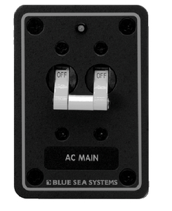 The Blue Sea Systems 8079 AC Main Only Circuit Breaker Panel provides reliable circuit protection and switching for 120V AC electrical systems on boats and RVs. This compact panel features a white toggle double-pole 50A main breaker that combines overcurrent protection with convenient on/off switching in a single device.