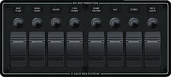 This panel provides reliable circuit protection and switching for essential marine electrical systems while maintaining a professional appearance that complements any helm station.