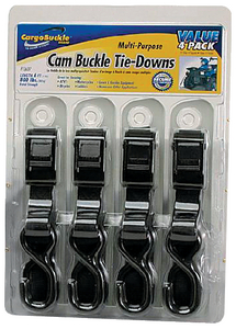 The Boatbuckle F12637 CargoBuckle Cam Buckle Tie-Down Value Pack provides a versatile cargo securing solution for marine, automotive, and general-purpose applications. Each strap features a durable 1-inch wide nylon webbing construction with a 6-foot length, providing excellent reach and flexibility for securing loads.