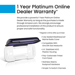 Perfect for boats, RVs, ATVs, UTVs, and other open-vehicle applications, the MRC5 protects your investment while maintaining easy access to your stereo controls. The cover measures 9.25" W x 4.13" H x 2" D and includes all necessary mounting hardware and an instruction manual. Backed by a 1-year manufacturer warranty.