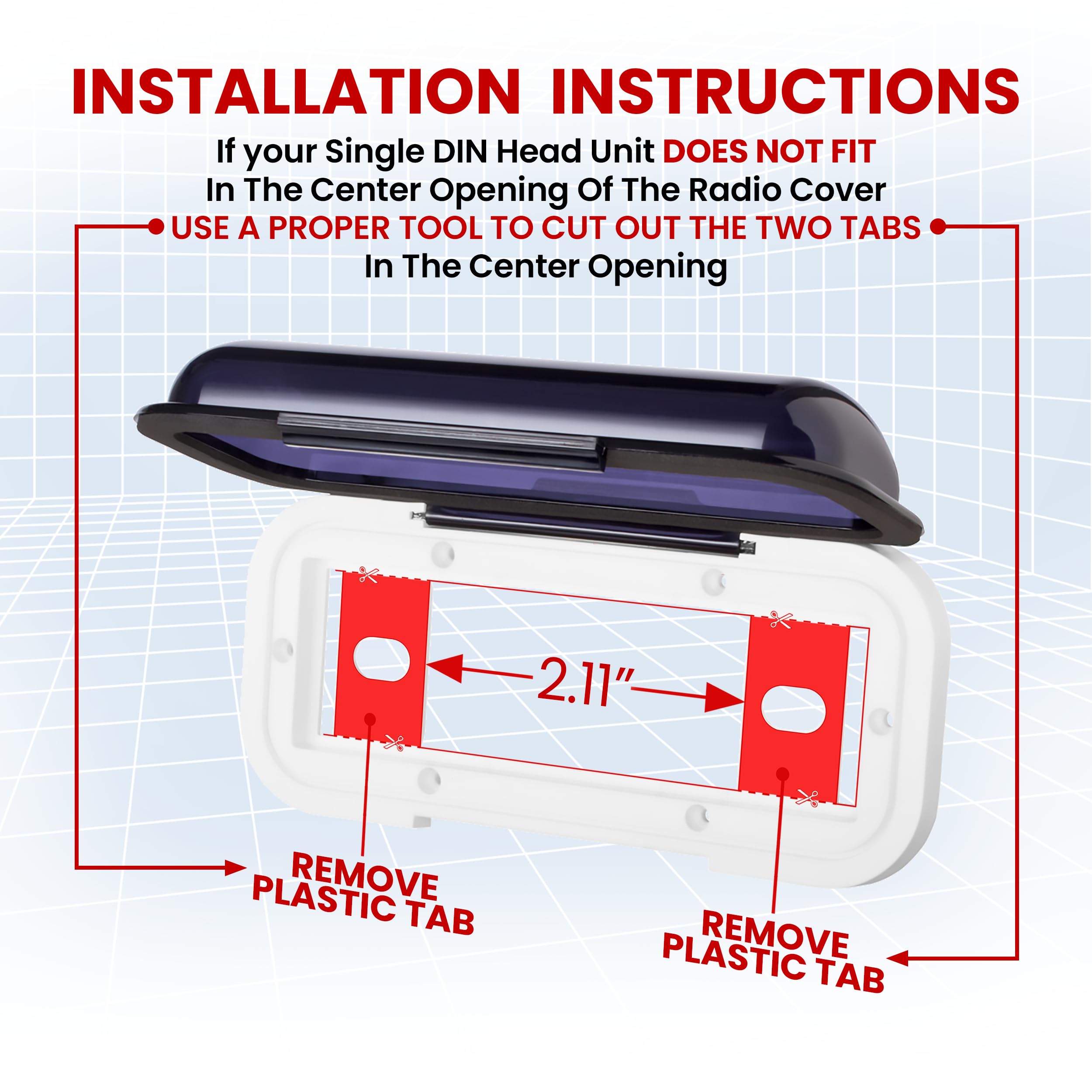 The Boss Audio Systems MRC5 is a universal waterproof marine radio cover designed to protect single-DIN head units from harsh marine environments. This fully sealed cover features a hinged, tinted polycarbonate front panel that shields your stereo from UV rays, direct impact, salt spray, and water intrusion.