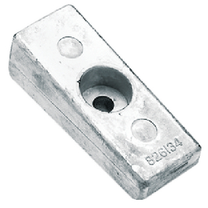 The Camp Zinc 826134 is a sacrificial zinc wedge anode designed to provide cathodic protection for Mercury, Mariner, and Force outboard engines. This corrosion control component installs in the two side pockets on the gearhousing just above the cavitation plate, protecting critical metal components from galvanic corrosion in saltwater environments.