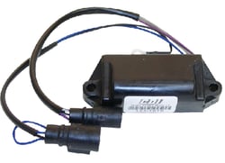 This ESA module is compatible with OMC stern drive applications using the Delco EST distributor system. The module receives switched 12V power and monitors 6V tach pulses from the distributor to accurately measure engine speed and adjust timing during shift operations. Essential for smooth and reliable shifting performance on Johnson/Evinrude powered vessels.
