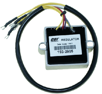 The CDI Electronics 193-2905 is a direct replacement voltage regulator designed for select BRP, Johnson, and Evinrude outboard motors. This unit replaces OEM part number 582905 and is engineered to regulate charging system voltage, protecting the battery and electrical components from overcharging damage.