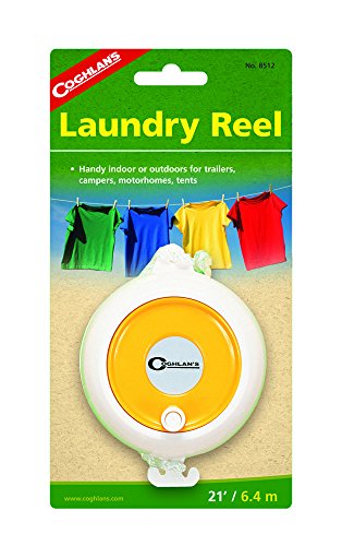The Coghlan's 8512 Laundry Reel provides a convenient 21-foot retractable clothesline that's perfect for camping trips, RV travel, and outdoor adventures. This compact laundry line system features a spring-loaded retractable design that automatically rewinds the line when not in use, keeping it tangle-free and neatly stored.