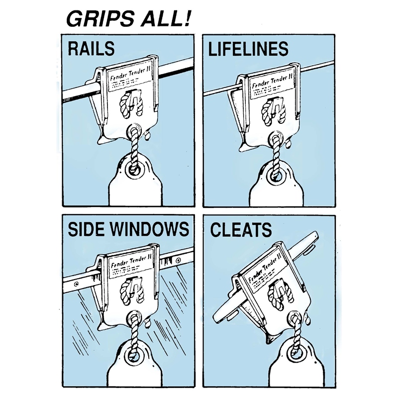 The Davis Instruments Fender Tender II provides a secure and versatile solution for hanging boat fenders on various mounting surfaces. This pair of adjustable clips attaches fenders to railings, lifelines, side wing windows, or cleats, keeping your fenders properly positioned and preventing them from shifting or falling overboard.