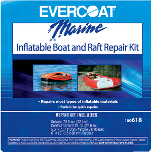 The Evercoat 100618 Inflatable Boat Repair Kit provides everything you need for durable, long-lasting repairs to inflatable watercraft. This comprehensive kit is specifically designed for nylon life rafts, dinghies, and other inflatable boats, ensuring reliable performance on the water.