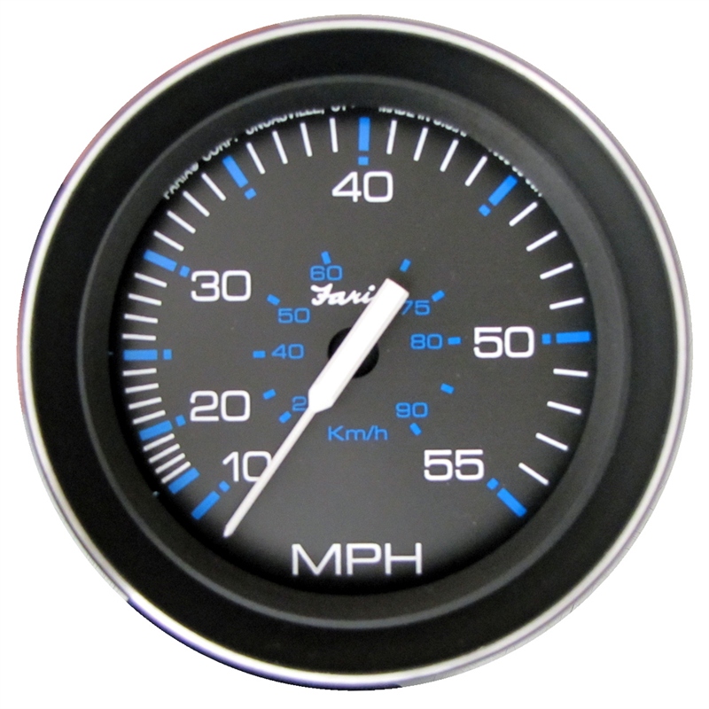 The Faria Instruments Coral series 4-inch speedometer delivers precision speed monitoring for marine applications up to 55 MPH. This pitot tube type speedometer features a perimeter-lighted black dial with crisp white and blue graphics for excellent visibility in all lighting conditions.