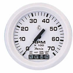 Faria Instruments 33150 Dress White 4" Tachometer 7000 RPM with SystemCheck Gas Johnson/Evinrude