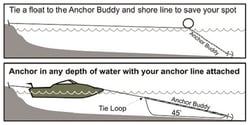 Simply drop your anchor approximately 30 feet from shore, proceed toward the beach, and the Anchor Buddy stretches while your anchor remains firmly set. As you pay out your bow line, the Anchor Buddy retracts, keeping your boat safely anchored offshore. The bungee action absorbs wave shock and prevents anchor dragging in rough conditions.