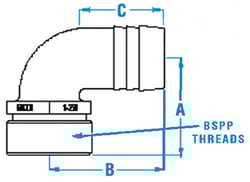 • 90-degree elbow design with male BSPP thread to hose barb connection
