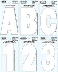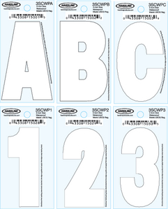 The Hardline Products 3SCWPM is a 3-inch white letter "M" registration decal designed for marine applications. Featuring the distinctive Dyer Font™, these high-quality vinyl letters meet U.S. Coast Guard requirements for vessel registration numbering.