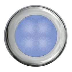The Hella 980502641 Slim Line LED courtesy lamp delivers efficient, elegant lighting for marine applications. This compact 3-inch round lamp features a stylish blue bezel with white light output, perfect for cockpits, cabins, companionways, and deck areas where subtle illumination is needed.