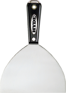 The Hyde Tools 02870 Black & Silver® Joint Knife is a professional-grade tool designed for drywall finishing and joint compound application. This joint knife features a high-carbon steel blade that delivers exceptional strength and flexibility for smooth, even application of joint compound, spackling, and other finishing materials.