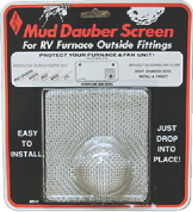 The JCJ M-500 Mud Dauber Screen is designed to protect your RV furnace outside fittings from unwanted pests and debris. This essential screen keeps pesky mud daubers, mice, wasps, frogs, birds and spiders from nesting in your appliances, preventing potentially costly damage to your furnace burner and fan motor.
