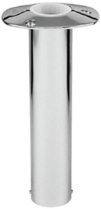 The Lee's Tackle RH527VS is a medium-sized stainless steel rod holder designed for permanent mounting on boats. This 0-degree rod holder positions rods vertically, making it ideal for trolling applications or organizing rods in a gunwale rocket launcher setup.