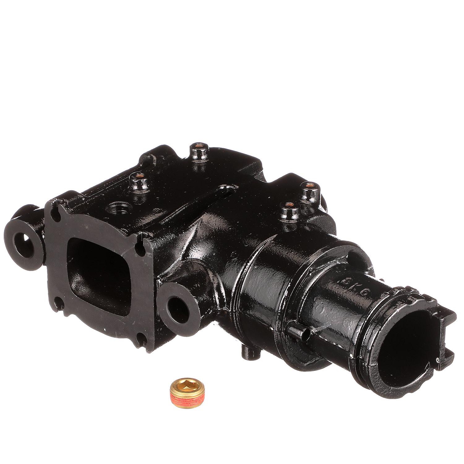 The Quicksilver 864309T02 is a replacement exhaust elbow engineered specifically for V6 and V8 MerCruiser sterndrive and inboard engines. This heavy-duty component features a 4-inch outside diameter with a 7-degree down angle outlet, designed for dry joint exhaust manifold systems on General Motors-manufactured marine engines.