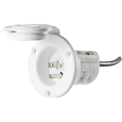 This power port mounts through your boat's hull or gunwale, allowing you to plug your shore power extension cord directly into the boat. The included protective cover keeps the connection clean and dry between charging sessions, extending the life of your charging system.
