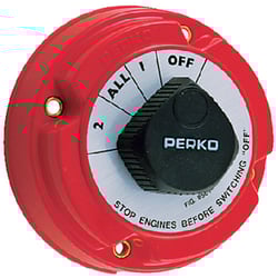The Perko 8501DP is a medium-duty battery selector switch designed for marine electrical systems with two or more batteries and single or dual engine configurations. This essential marine component provides reliable battery management and switching capability for boats requiring multiple power sources.
