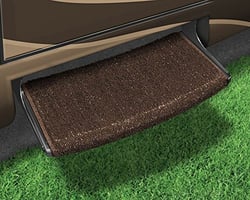 The Prest-O-Fit 2-0203 Wraparound Radius RV Step Rug is specifically engineered to fit curved or radius-style RV entry steps, providing both safety and style. This 22-inch wide step rug features a rich espresso brown color that complements virtually any RV exterior.