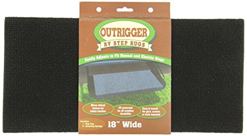 The Prest-O-Fit Outrigger RV Step Rug in Black Onyx provides enhanced traction and helps keep your RV interior clean by trapping dirt and debris at the entry. Measuring 18 inches wide, this durable step rug features a micro-ribbed texture design that improves grip and reduces slipping on RV steps.