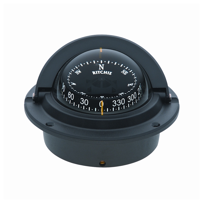The Ritchie Navigation F-83 Voyager Compass delivers professional marine navigation performance in a compact flush-mount design. Featuring a 3-inch CombiDamp dial, this compass combines a traditional flat card with direct reading capability, allowing it to be read from both above and directly in front for maximum visibility from any angle at the helm.