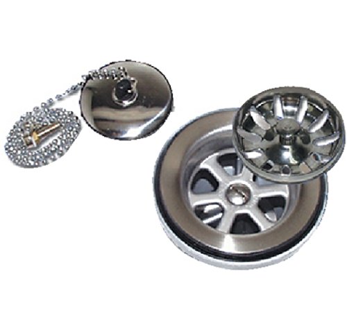 Scandvik 10313P Stainless Steel Sink Drain with Removable Basket and Stopper 1-1/2" Outlet
