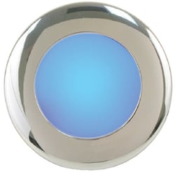 The Scandvik A2.5 four color LED down light offers versatile illumination for marine hard top and helm station installations. This compact fixture features an intelligent 2-wire design that allows easy color switching between white, blue, red, and green lighting modes with a simple switch operation.