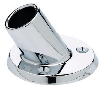 The Seachoice 37801 is a chrome-plated zinc round base rail fitting designed for marine applications. This durable fitting features a 60-degree angle and accepts 7/8" tubing, making it ideal for constructing custom handrails, safety rails, and deck hardware on boats.