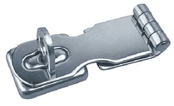 This swivel hasp provides flexible security options for boat compartments, dock boxes, and other marine applications where both access and security are needed. The rotating design accommodates varying angles while maintaining a secure connection point.