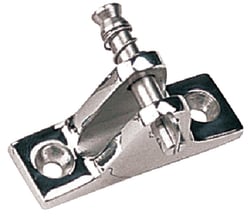 The Sea-Dog Line 270235-1 is a heavy-duty angled deck hinge with removable pin, specifically designed for marine applications where mounting on slanted surfaces is required. This top-mount hinge fitting is ideal for Bimini tops, canopies, and other boat hardware that needs to attach to sloped gunwales or angled deck surfaces.