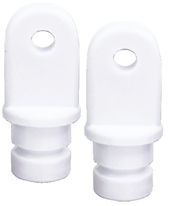 Top inserts connect to 3/4” or 7/8” round tubing and create an attachment point to function as a pivot point as part of a Bimini top system. Available in black, white or 316 stainless steel. 1/4” Pin size. *Stainless tube wall thickness 0.049".