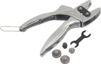 • Includes die wrench and three removable dies for installing various snap cap and stud sizes