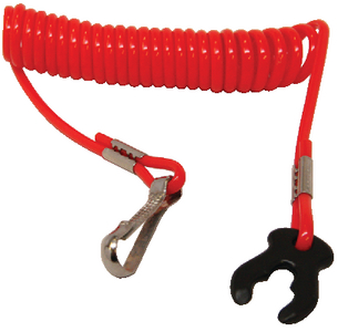 The Sea-Dog Line 420489-1 is a replacement safety lanyard designed for marine engine kill switches. This essential safety device connects the operator to the engine's emergency shut-off system, automatically stopping the engine if the operator is thrown from the helm or moves beyond a safe distance.